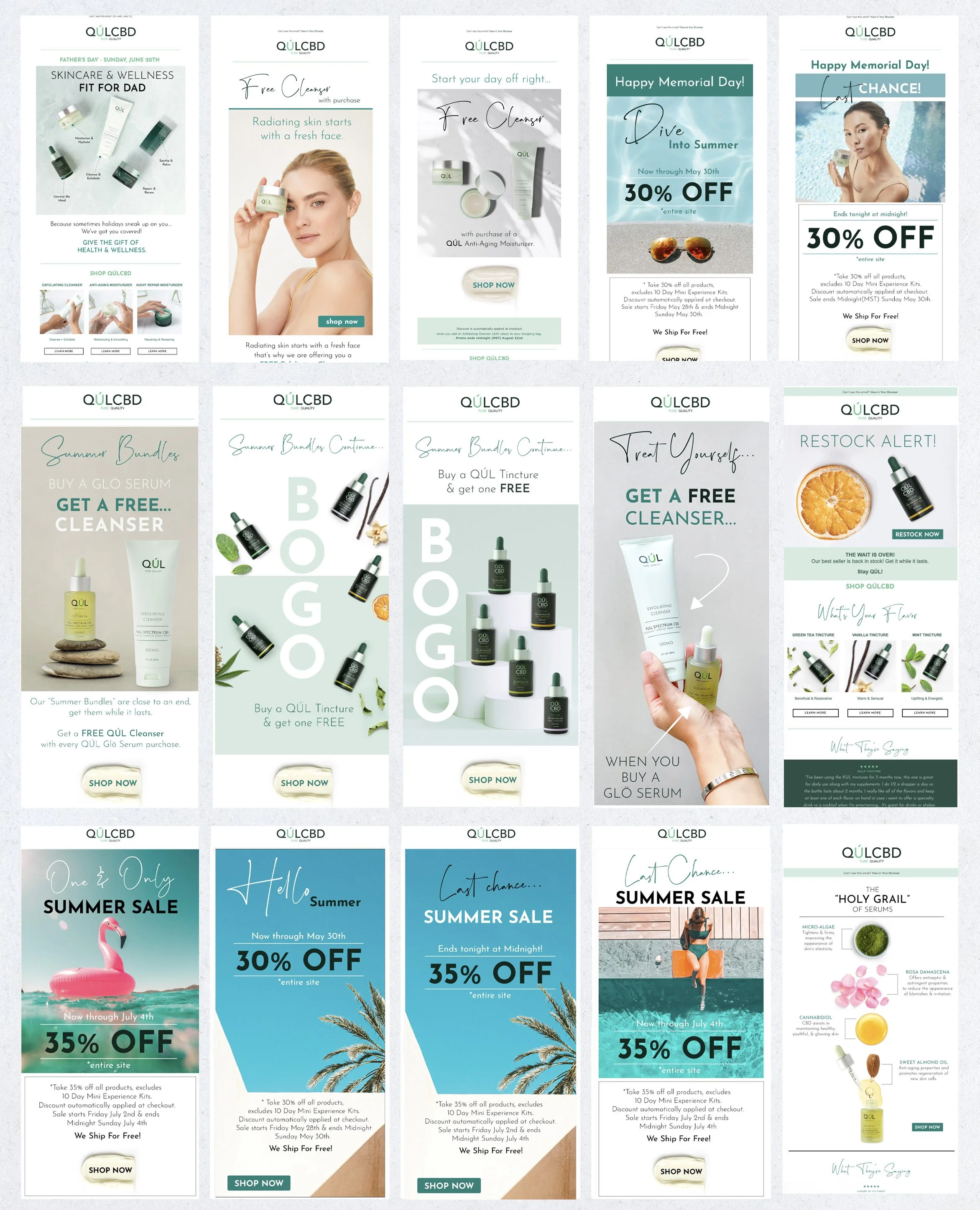 A mix of email blasts with animated gifs for QÚL Skincare part of Skin Experts.