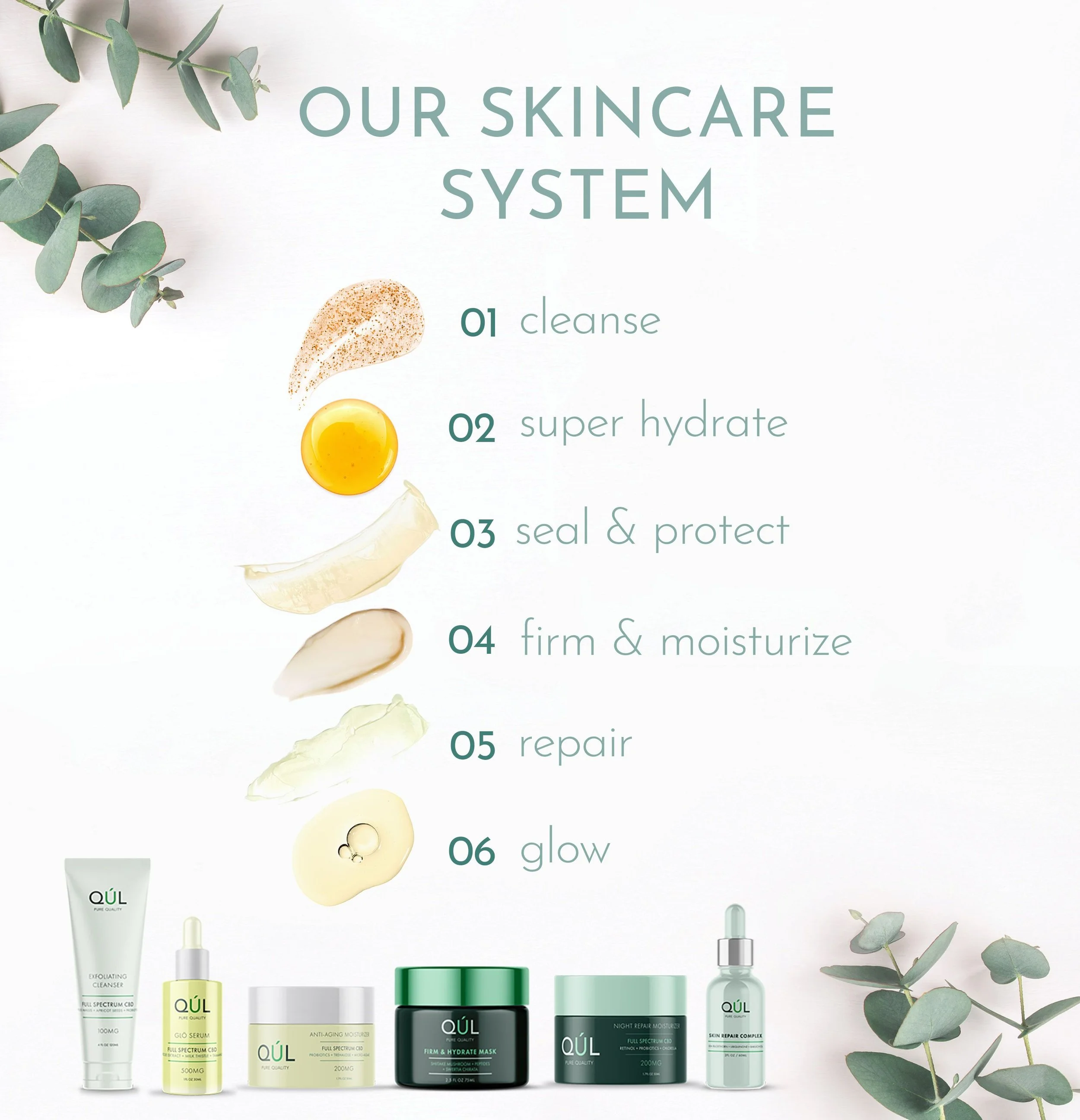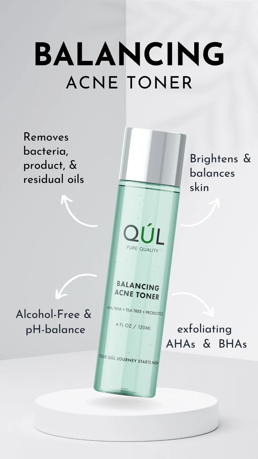 A series of posts, stories, and reels promoting QÚL products and the Skincare System.